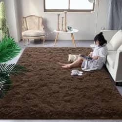 Tapete de pelo alto y esponjoso para sala, dormitorio, habitación de niños, guardería y cabecera, tapete extragrande, antideslizante y supersuave,el tapete esponjoso está hecho de material de tres capas: microfibra sintética en la parte superior, esponja gruesa en el medio y tela no tejida en la base, lo que permite que el tapete de habitación sea más suave y cómodo.